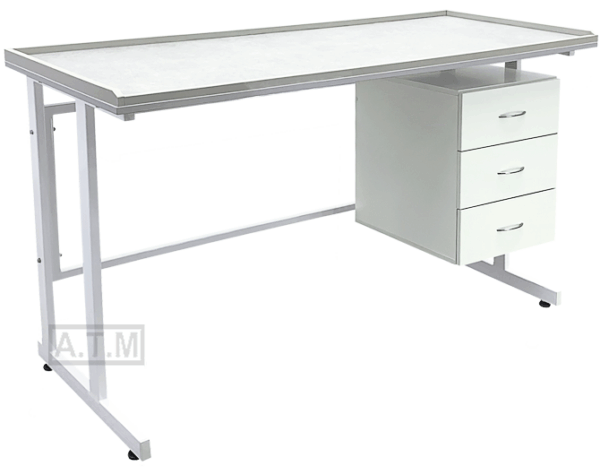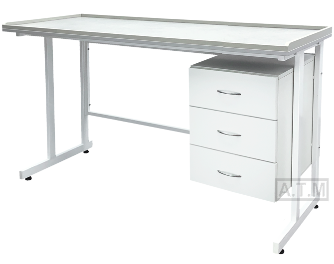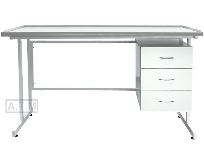 Стол оснащен тумбой с тремя выдвижными ящиками;