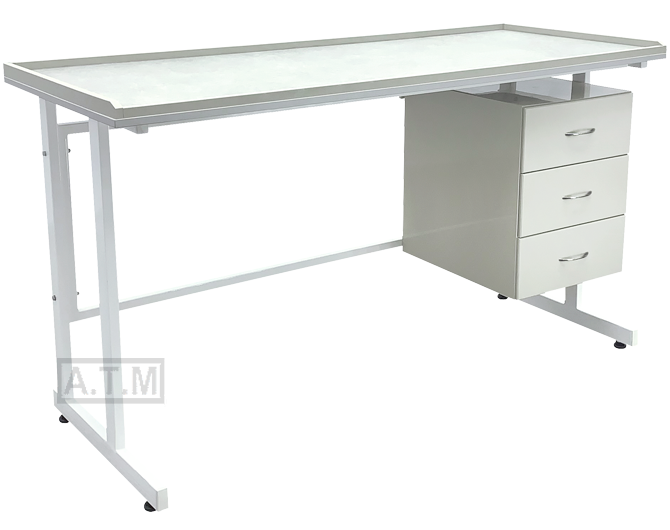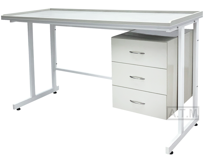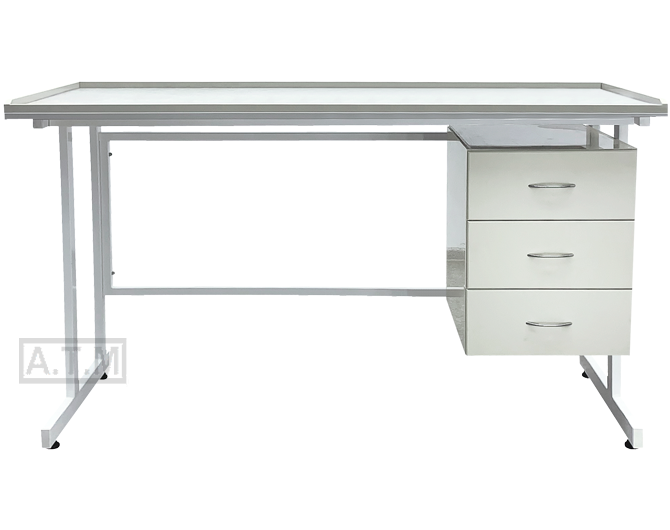 Стол оснащен тумбой с тремя выдвижными ящиками;