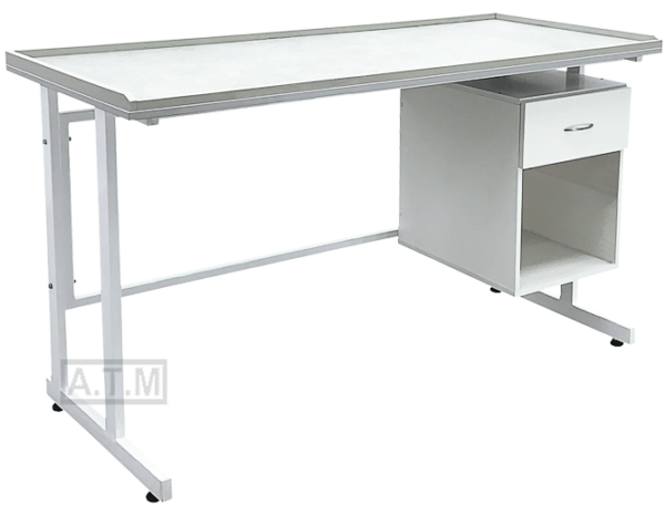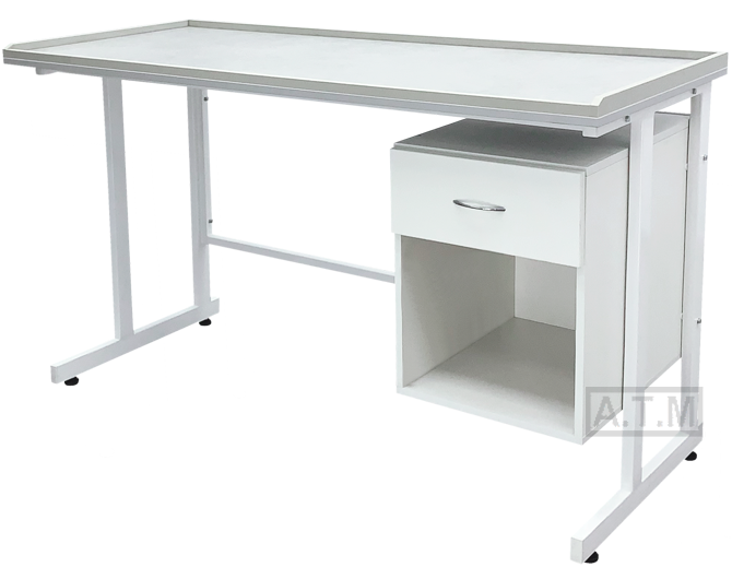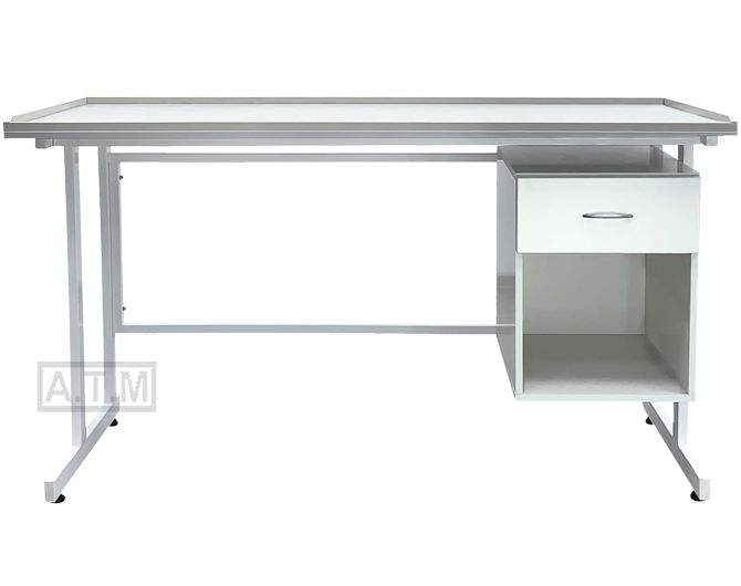 Стол оснащен тумбой с ящиком и нишей;