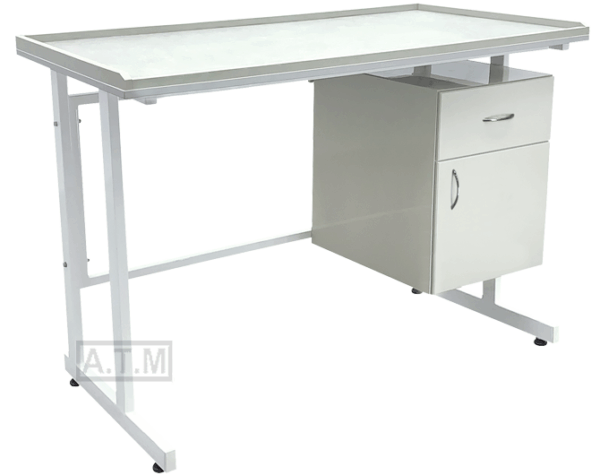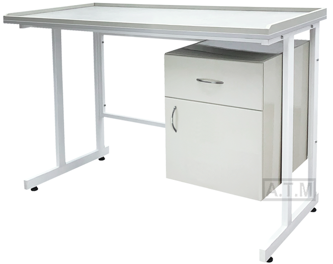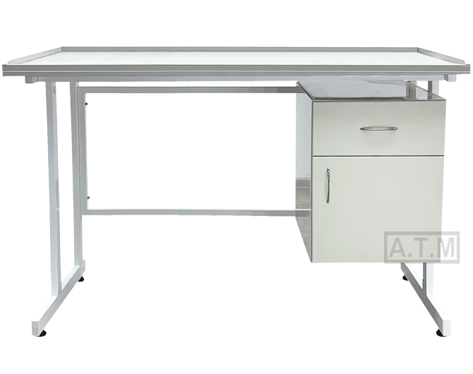 Стол оснащен тумбой с ящиком и створкой;