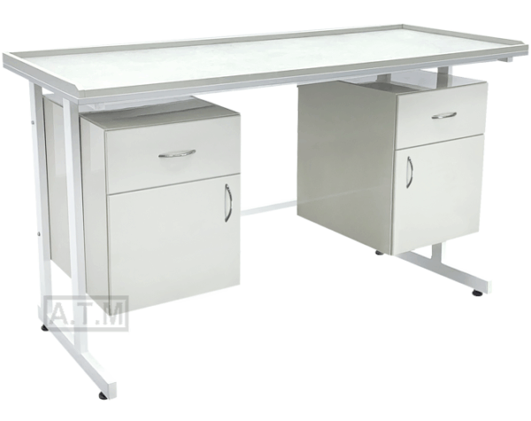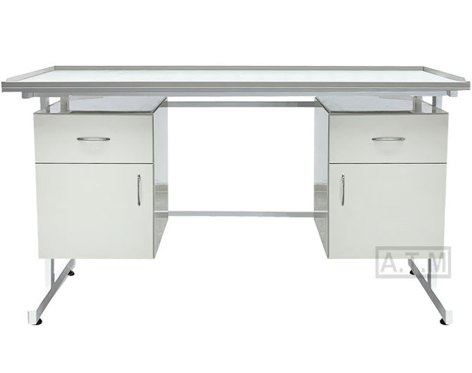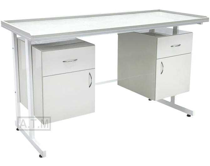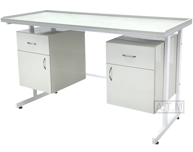 Стол оснащен 2-мя тумбами с ящиком и створкой;