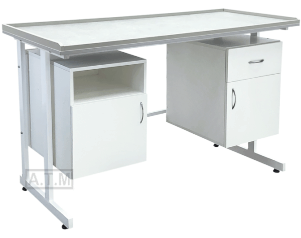 Одна оснащена нишей и створкой, вторая оснащена ящиком и створкой;