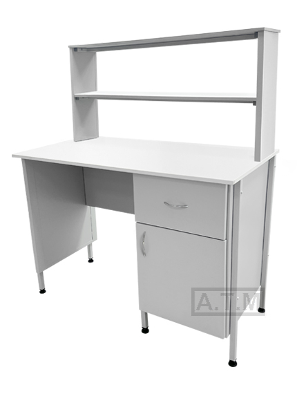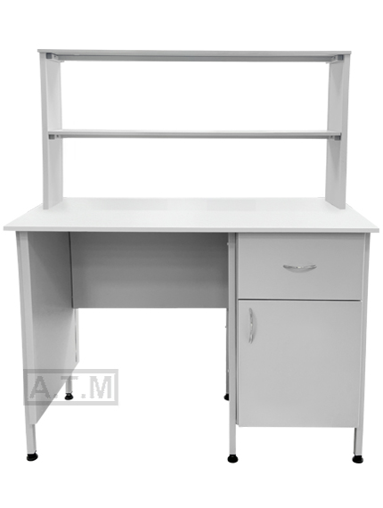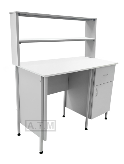Стол оснащен тумбой с ящиком на шариковых направляющих и створкой;