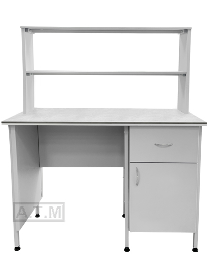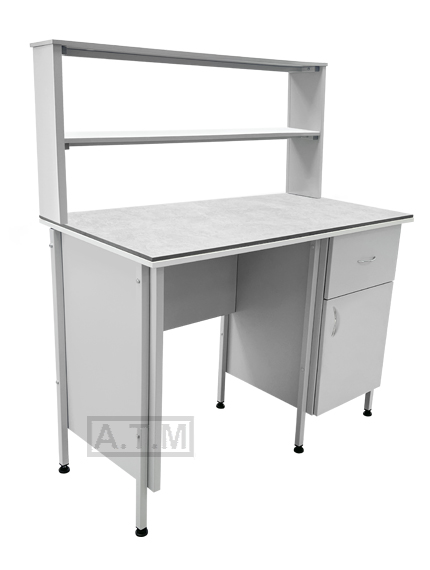 Стол оснащен тумбой с ящиком на шариковых направляющих и створкой;