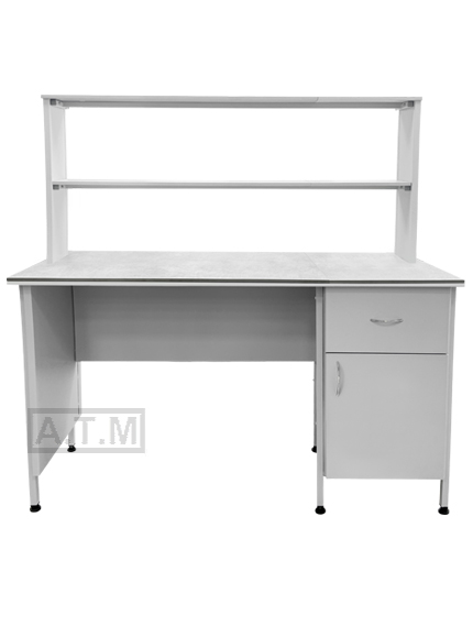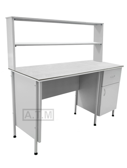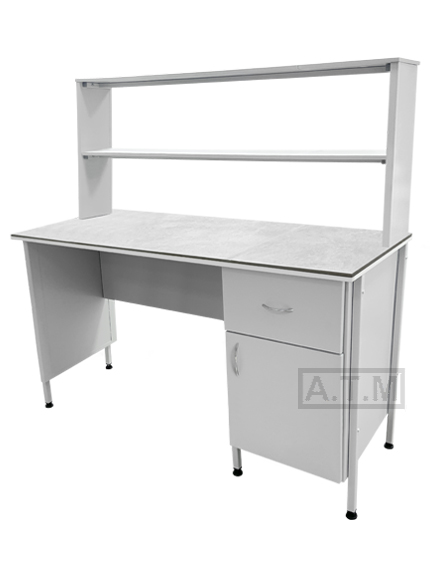 Стол оснащен тумбой с ящиком на шариковых направляющих и створкой;