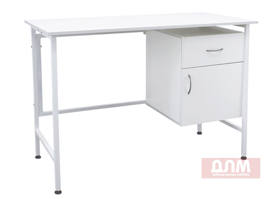 Стол снабжен подвесной тумбой с ящиком и створкой.