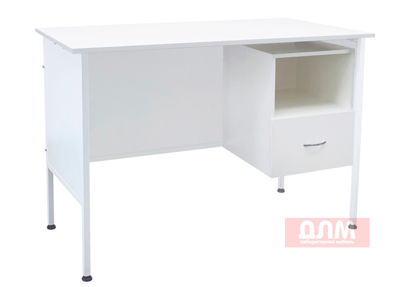Стол снабжен подвесной тумбой с нишей и ящиком.