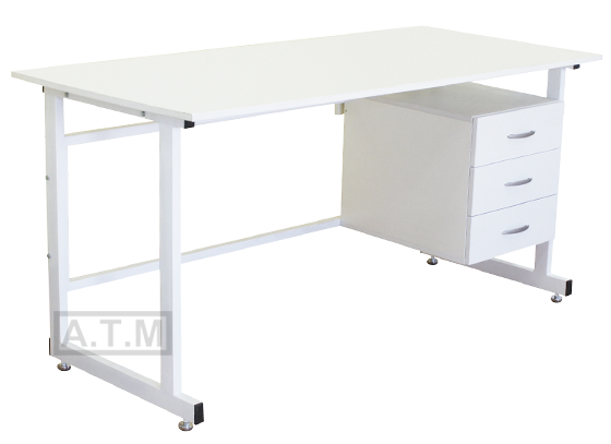 Стол оснащен тумбой с 3 ящиками на шариковых направляющих;