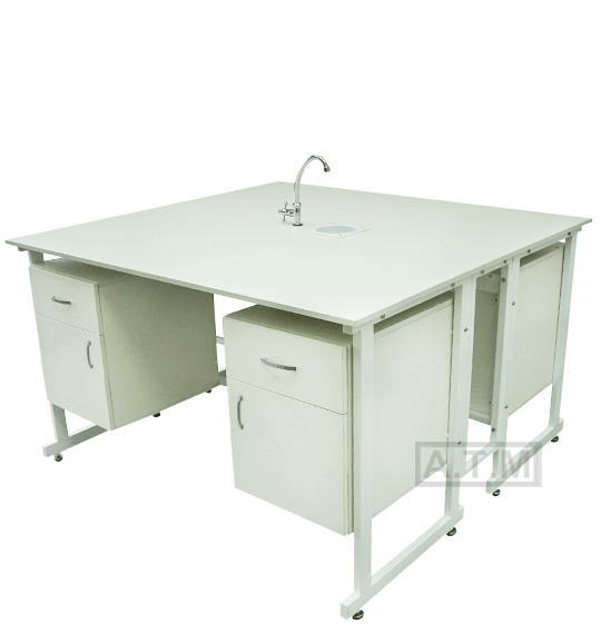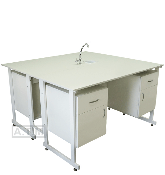 Стол оснащен 4 тумбами ( Каждая тумба имеет ящик и створку) ;