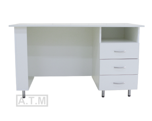 Стол снабжен нишей и 3 ящиками на роликовых направляющих;