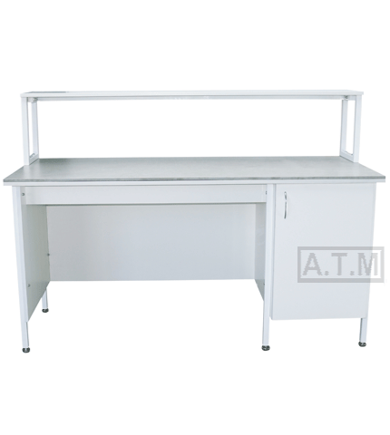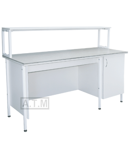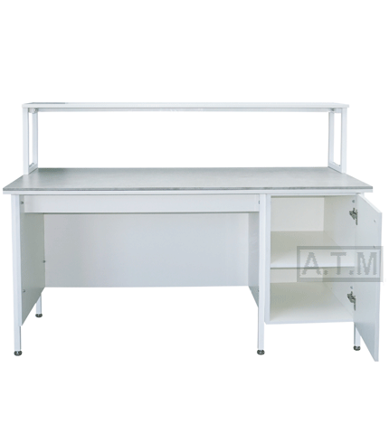 Стол оснащен тумбой с распашной дверцей и полкой;