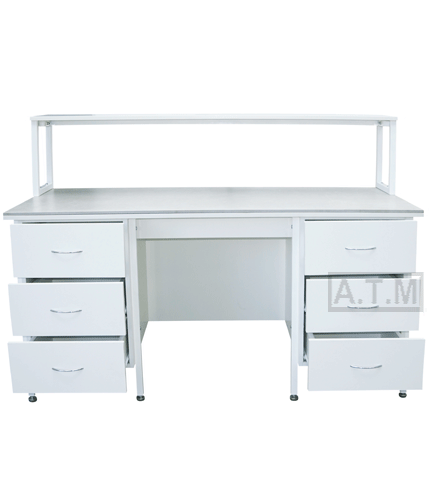 Полка облицована химостойким пластиком с 2-х сторон 16 мм;
