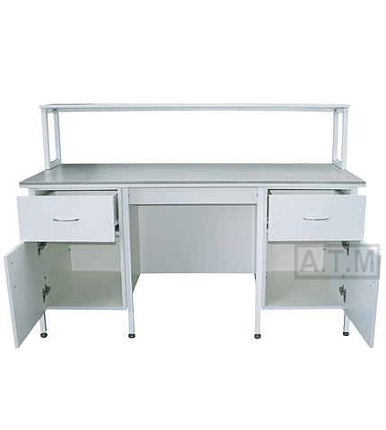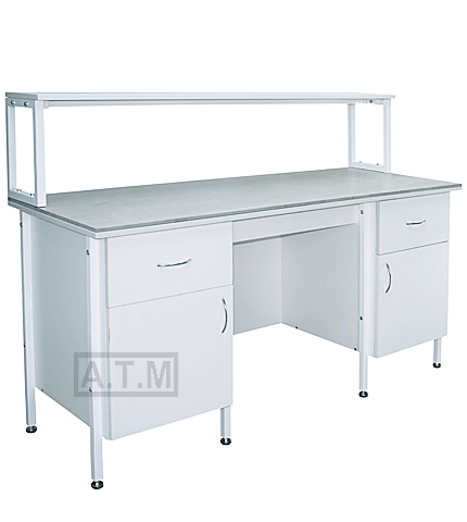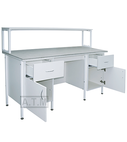 Стол снабжен надстройкой с одной полкой;