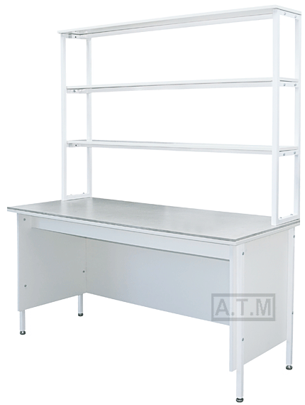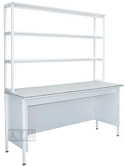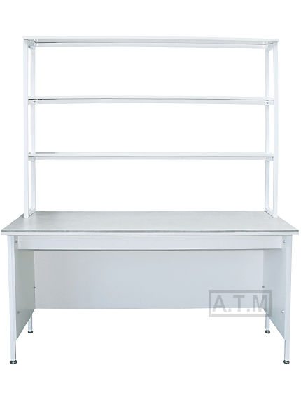 Стол снабжен надстройкой с тремя полками;
