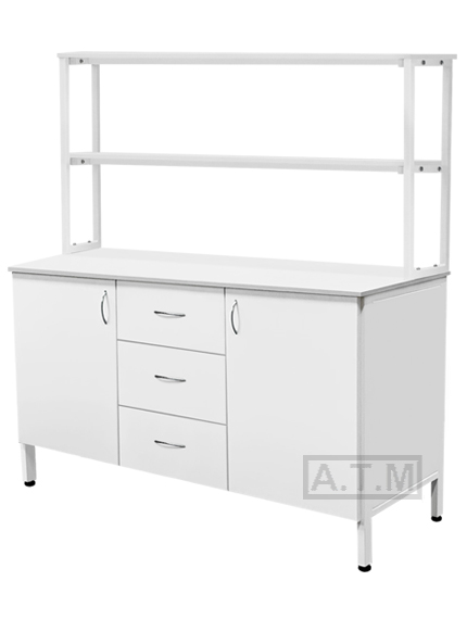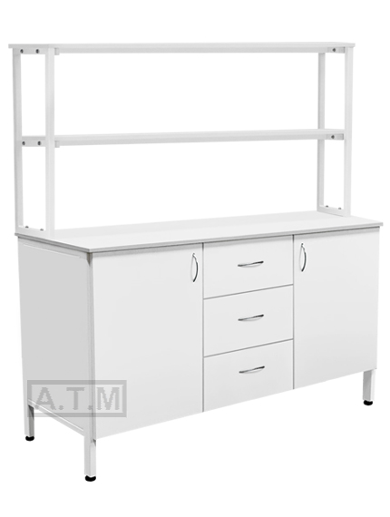 Полки надстройки облицованы химостойким пластиком с 2-х сторон 16 мм