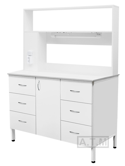 Полки надстройки облицованы химостойким  пластиком с 2-х сторон 16 мм