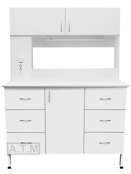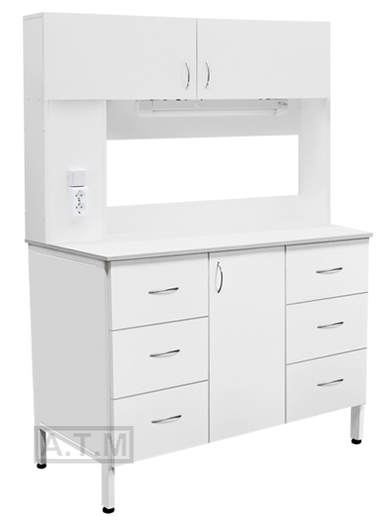 Полки надстройки облицованы химостойким пластиком с 2-х сторон 16 мм