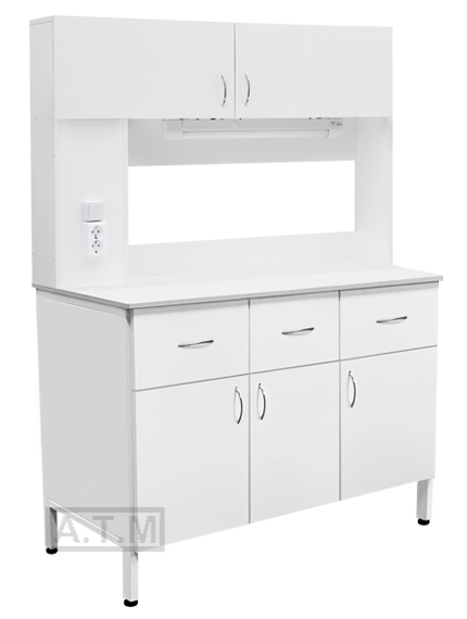 Полки надстройки облицованы химостойким  пластиком с 2-х сторон 16 мм