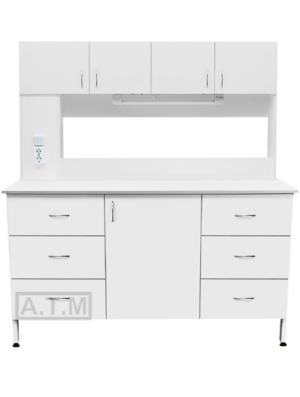 Полки надстройки облицованы химостойким  пластиком с 2-х сторон 16 мм