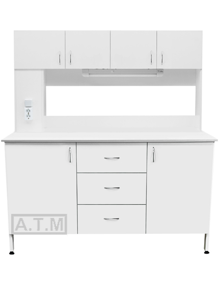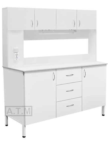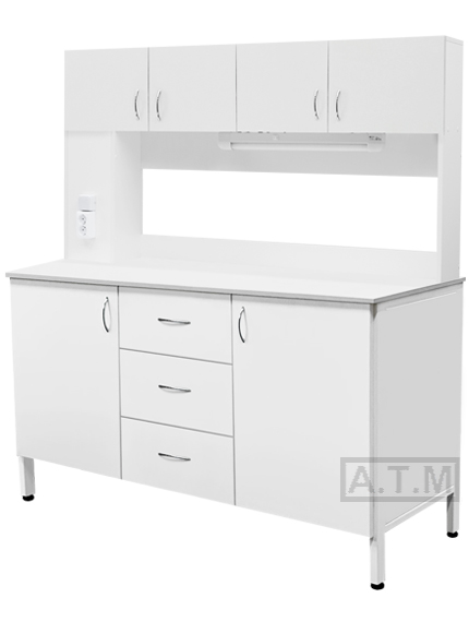 Полки надстройки облицованы химостойким  пластиком с 2-х сторон 16 мм