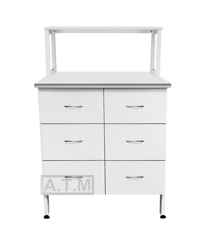 Стол оснащен 6 ящиками на шариковых направляющих и надстройкой с одной полкой