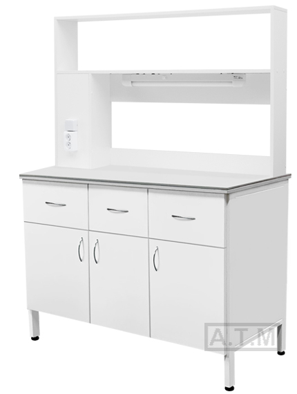 Полки надстройки облицованы химостойким пластиком с 2-х сторон 16 мм