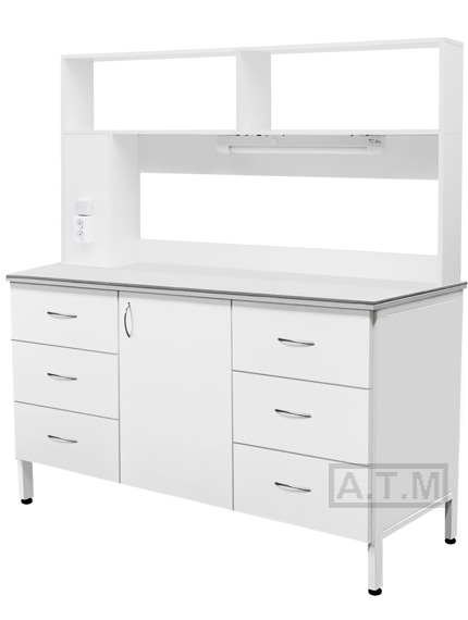 Полки надстройки облицованы химостойким пластиком с 2-х сторон 16 мм