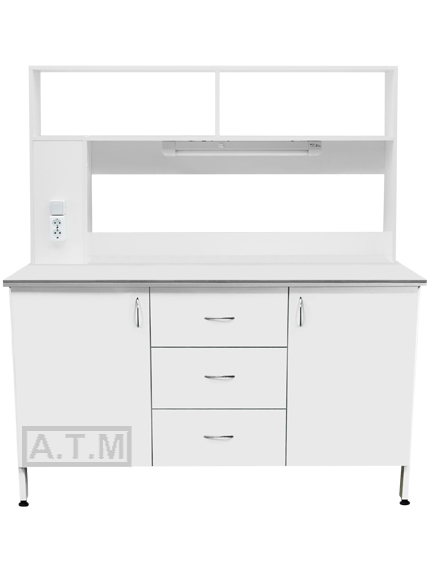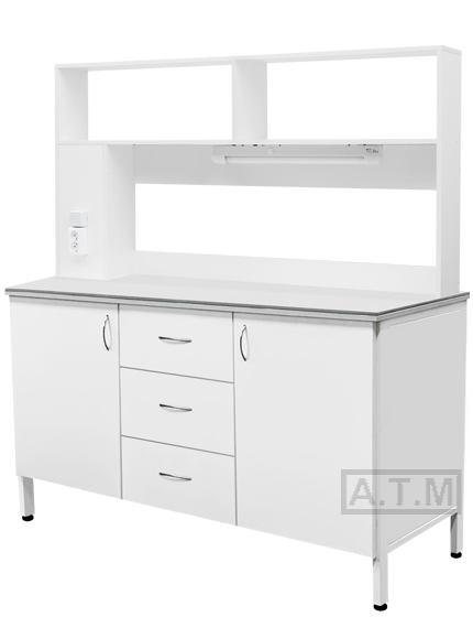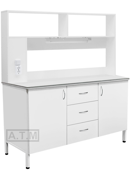 Полки надстройки облицованы химостойким  пластиком с 2-х сторон 16 мм
