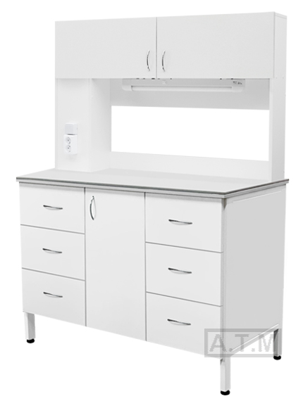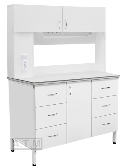 Полки надстройки облицованы химостойким пластиком с 2-х сторон 16 мм