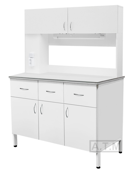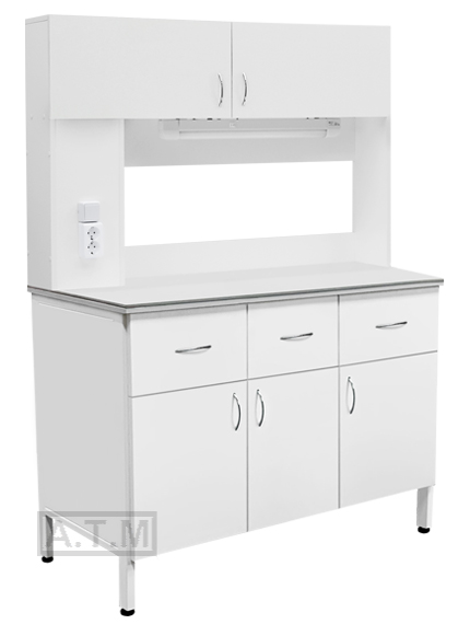 Полки надстройки облицованы химостойким пластиком с 2-х сторон 16 мм