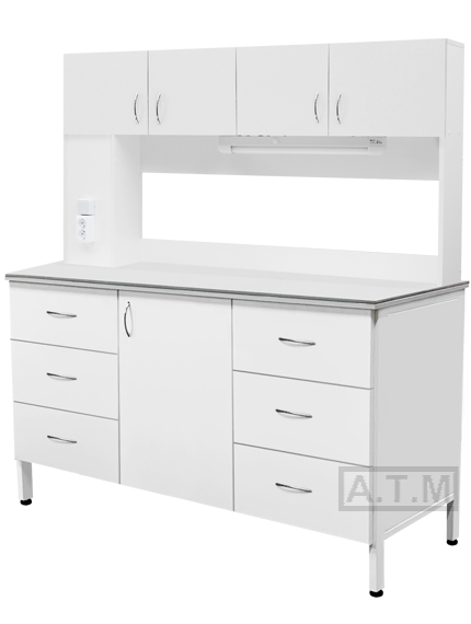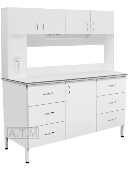 Полки надстройки облицованы химостойким пластиком с 2-х сторон 16 мм