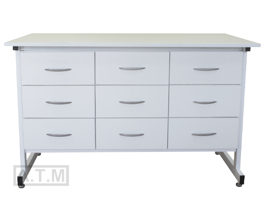 Стол оснащен по боками 9 ящиками на роликовых направляющих;