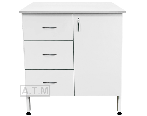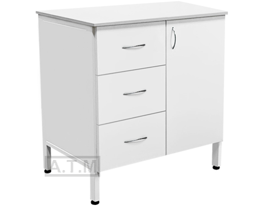 Стол оснащен 3-я ящиками на роликовых направляющих и створкой