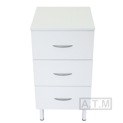 Тумба имеет три выдвижных ящика, снабженных роликовыми направляющими;