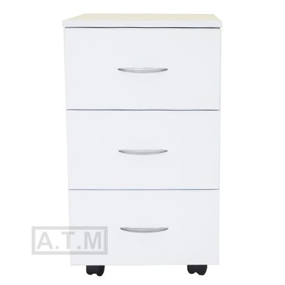 Тумба имеет три выдвижных ящика, снабженных роликовыми направляющими;