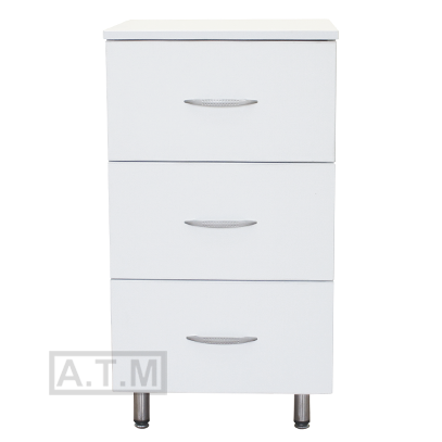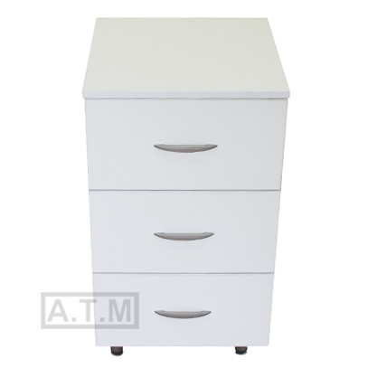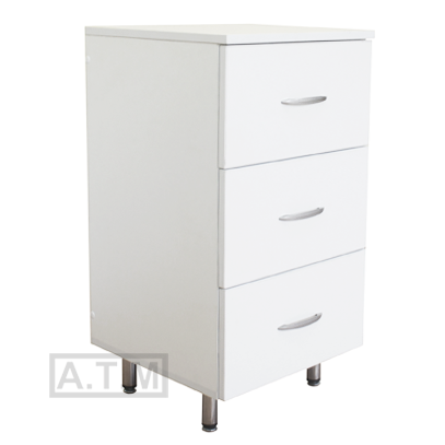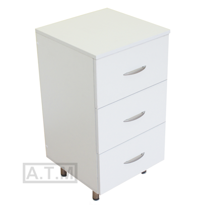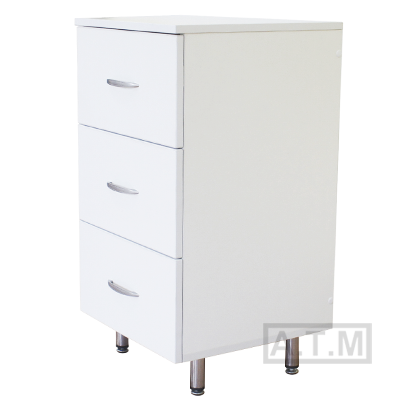 Тумба имеет три выдвижных ящика, снабженных роликовыми направляющими;