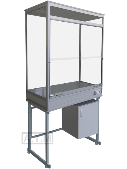Шкаф установлен на металлический каркас из профильных труб 25х50 с полимерно-порошковым покрытием и регулируемыми опорами